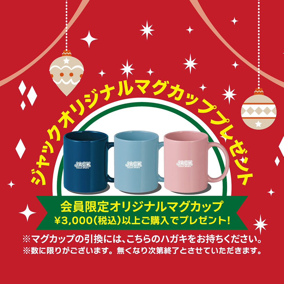 ハガキが届いたジャック会員様には、¥3,000(税込)以上お買い上げの方にオリジナルマグカップをプレゼント!